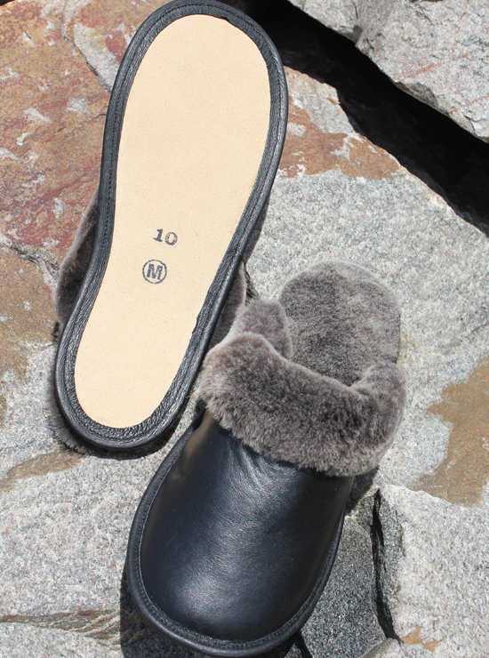 This black leather mule is lined with the most plush genuine sheepskin. Cozy, warm and classic!