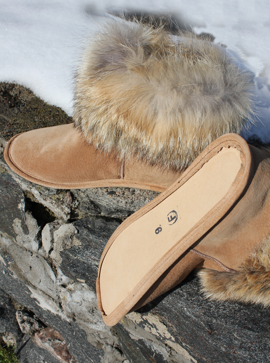 This plush bootie is warm, cozy and looks great, too! Crafted of sheepskin, it features a plush and comfy lining. The trim is coyote fur for a luxurious finish. Order your shoe size (or half size down) for the best fit.