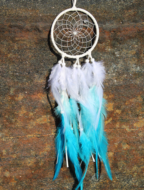 These dreamcatchers feature the ‘hombre look’; colours starting light and finishing dark. They will trap your bad dreams in their webs, allowing you to have only good dreams! Available in either brown or turquoise, these hoops measure 3″/7.5 cm and they are 12″/30 cm long.