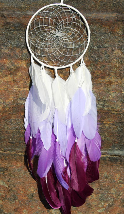 These dreamcatchers feature the ‘hombre look’; colours starting light and finishing dark. They will trap your bad dreams in their webs, allowing you to have only good dreams! Available in either gray or purple, these hoops measure 6″/15 cm and they are 21″/53 cm long.