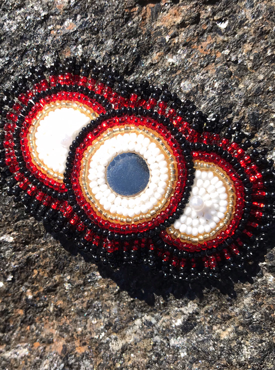 These barrettes will liven up your look. Crafted by an Ojibway artisan in Ontario, each is unique – what a beautiful way to accessorize your hair. They measure 3.25″ wide x 2″ wide (8 cm x 5 cm).