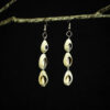 These earrings are crafted on Manitoulin Island and feature cascading cowrie shells. They are symbolic of wealth, fertility, protection, and divination. They measure 2″ long (5 cm).