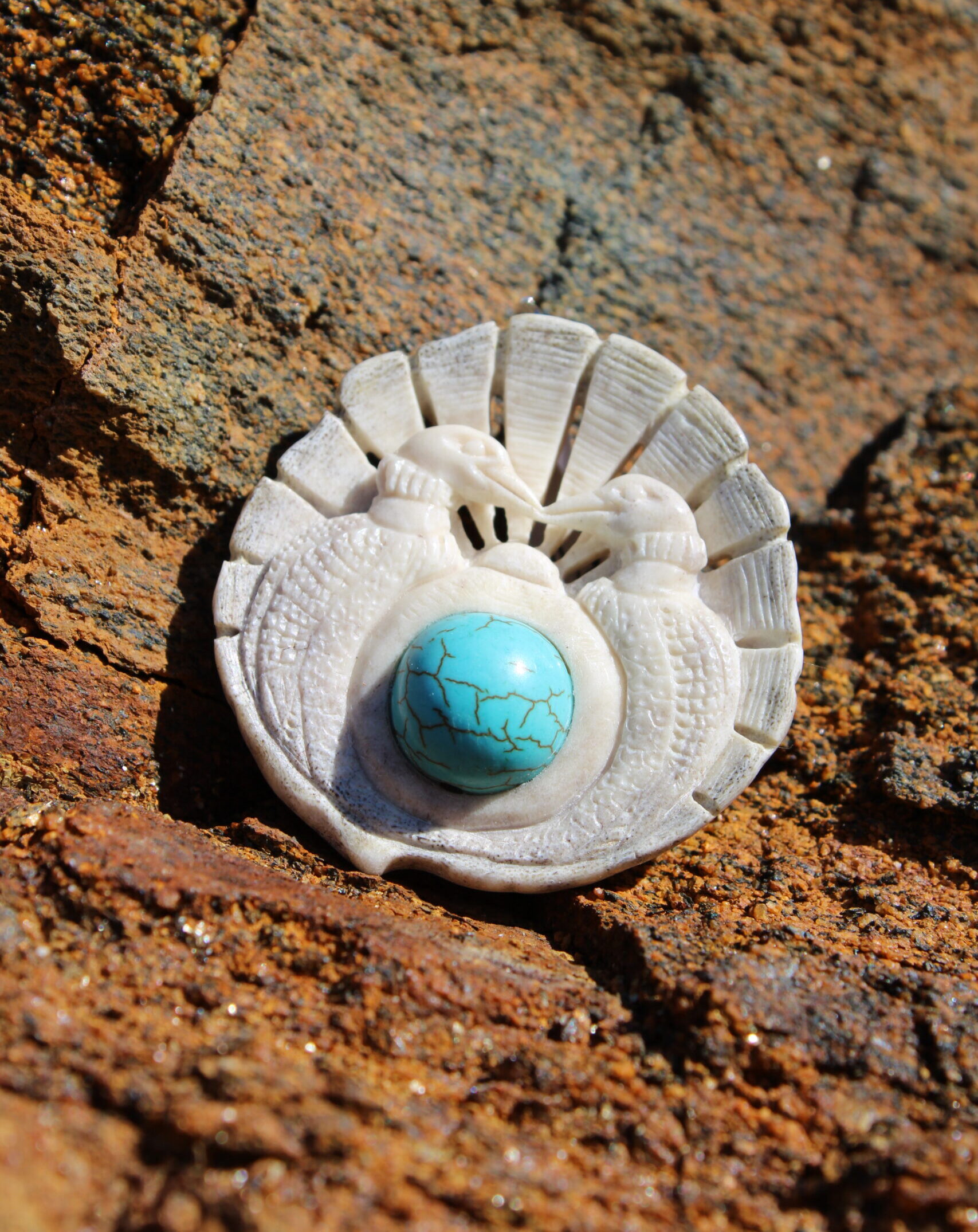 ITEM: Deer Antler Pendant by R. Parnham – Two Loons/Turquoise