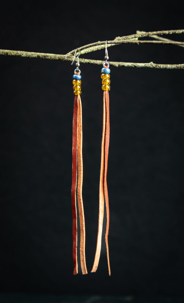 ITEM: Beaded and Fringed Deerskin Earrings by B. Henry