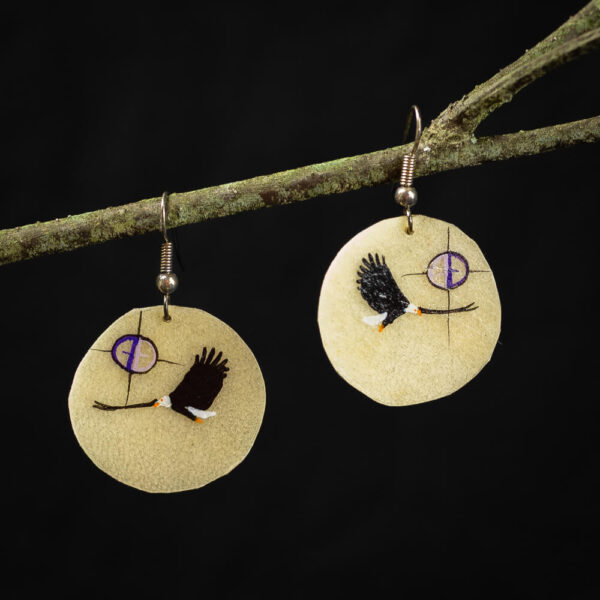 Hand Painted Earrings on Rawhide – Flying Eagle