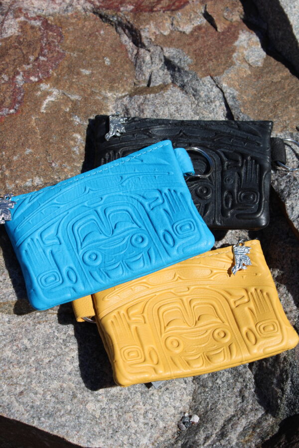 These striking, zippered coin purses are crafted of buttersoft deerskin. The bear box design is embossed on both sides, giving the pouch a luxurious feel. Choose from among three colours, each measuring 5″ x 3.5″ (12.5 cm x 8 cm).