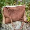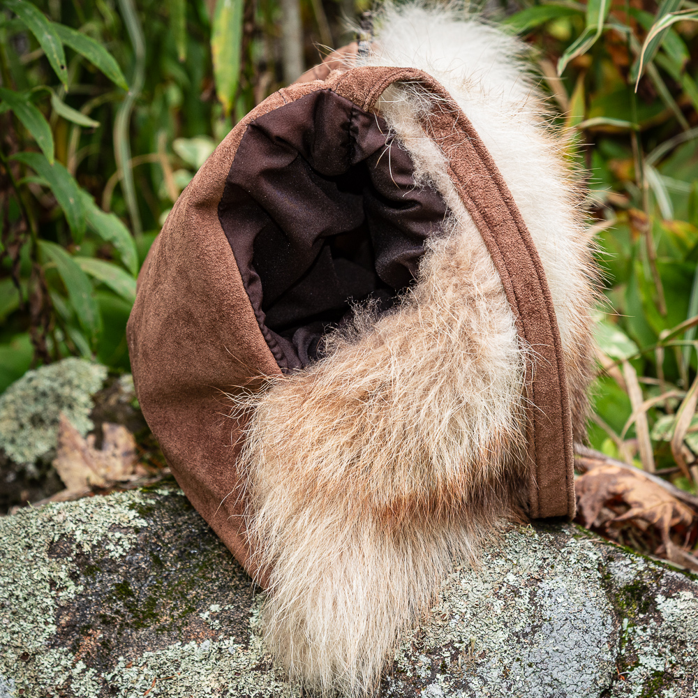 Is it a purse or a muff – it’s both! This one of a kind leather bag features raccoon fur on the front and a zipper on top. Slip your hands between the front and back – the bag is lined with a soft material to keep you toasty warm. Measures 12″ x 9.5″ (30 cm x 23 cm).